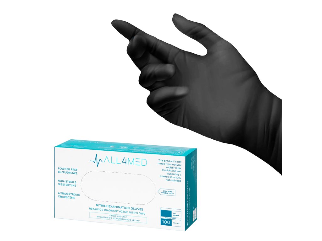 All4med Jednorázové nitrilové diagnostické rukavice černé S 10 x100ks