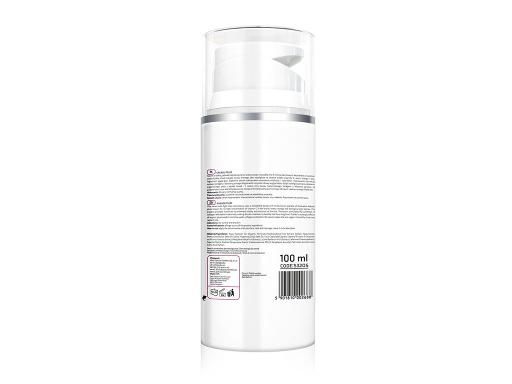 Sérum s lehkou, hedvábnou konzistencí využívá mimořádnou sílu 4 multivitaminových ovocných extraktů: australská švestka Kakadu - ovoce známé jako největší světový zdroj vitaminu C, třešně, mango a bio goji bobule. Poskytuje pleti maximální výživu, vitalitu a hydrataci. Intenzivně stimuluje syntézu kolagenu a elastinu, čímž pomáhá dlouhodobě udržovat zdravý vzhled pokožky. Díky synergickému účinku organického oleje ze švestkových semínek, oleje z chia semínek a kyseliny hyaluronové je pokožka bez života okamžitě revitalizována a vyzařuje zdravý a energický lesk.