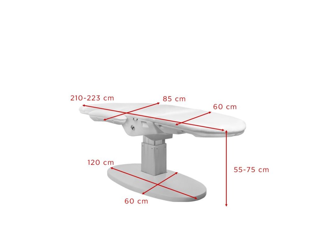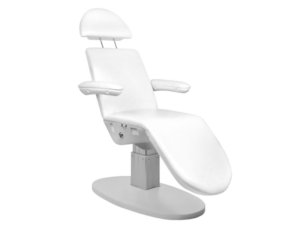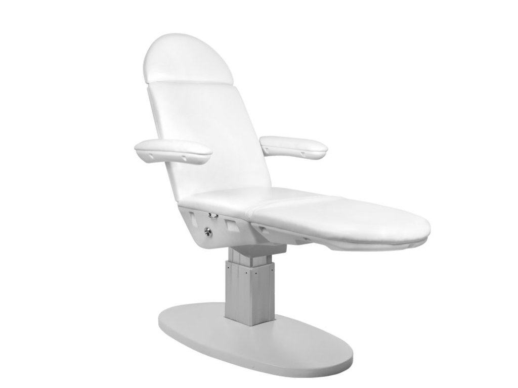 Moderní, estetické, řízené kosmetické křeslo s aerodynamickým tvarem. Vyrobeno z ekokůže splňující přísné požadavky EU. Křeslo má možnost elektrického nastavení výšky, zádové a podnožky.