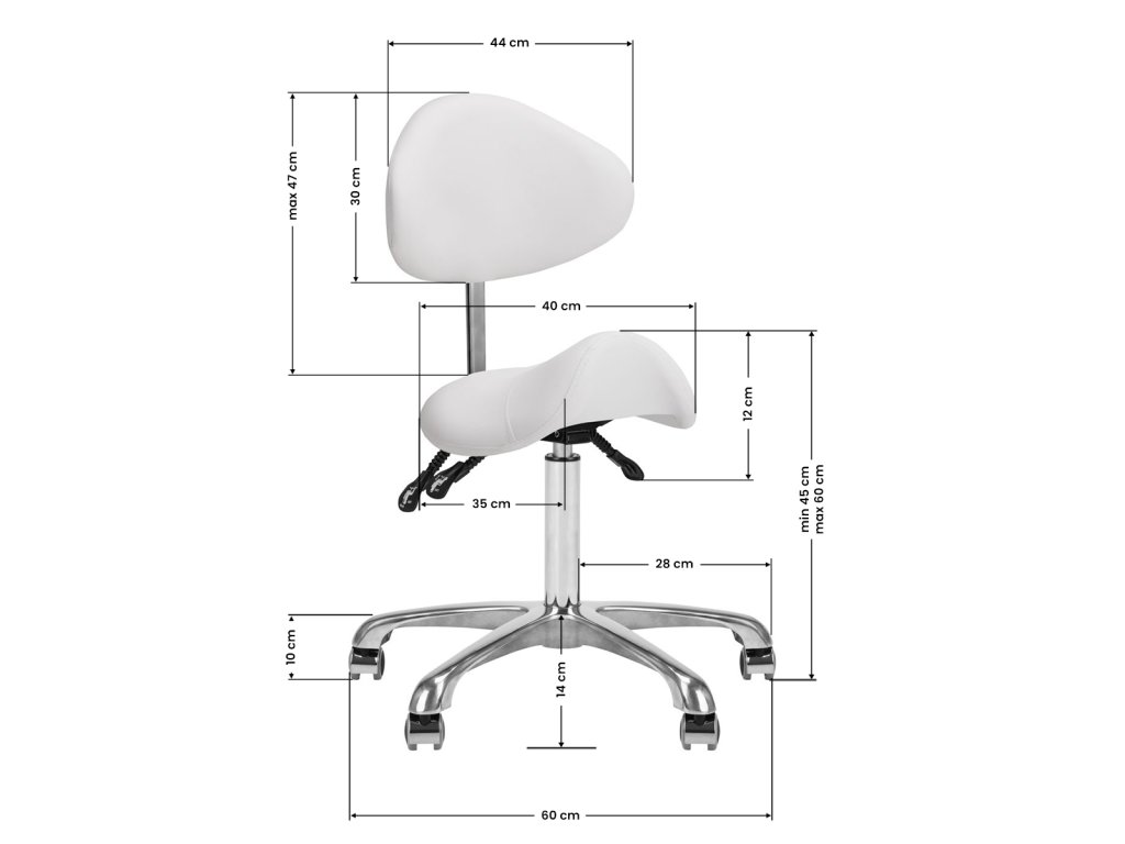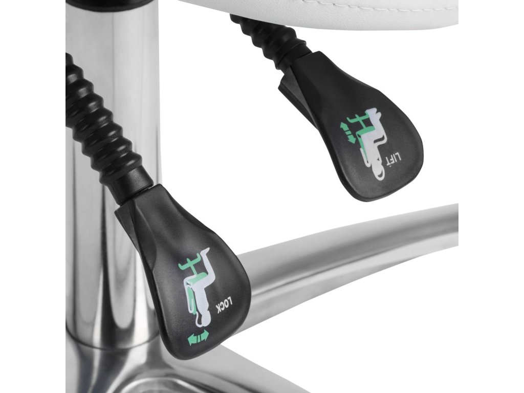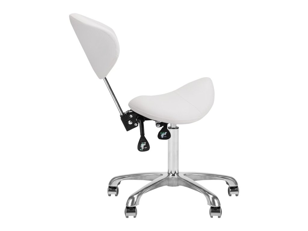 kosmetický taburet Giovanni 1004, bílý taburet do salonu, otočný taburet pro kosmetičku, taburet s nastavitelnou výškou, pohodlný taburet na kolečkách