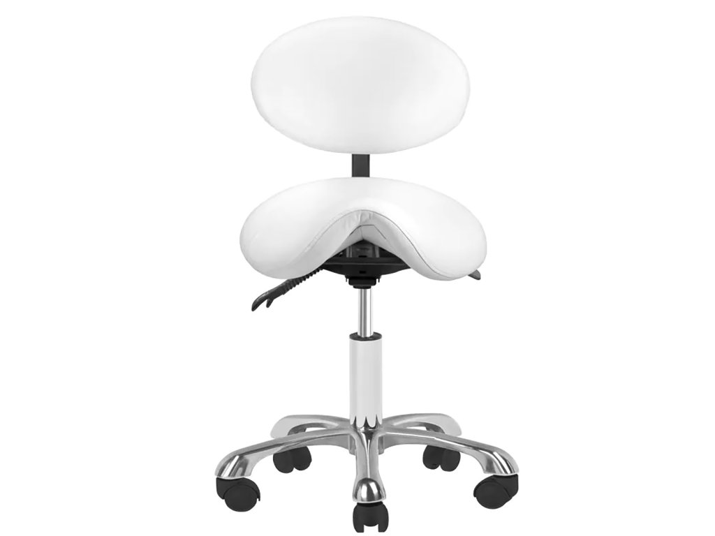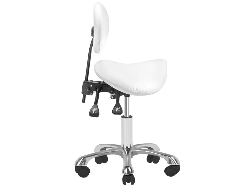 kosmetický taburet Giovanni 1025, bílý taburet do salonu, otočný taburet pro kosmetičku, taburet s nastavitelnou výškou, pohodlný taburet na kolečkách