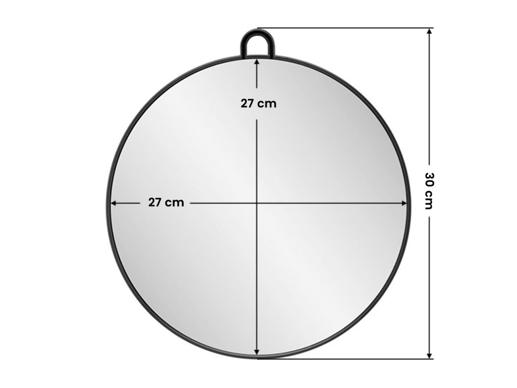 Zrcátko má odolný plastový rám v moderní černé barvě a praktické ouško pro zavěšení.