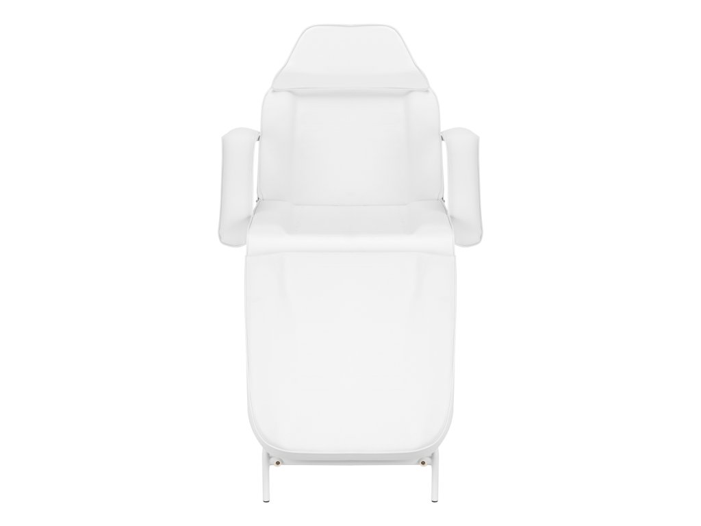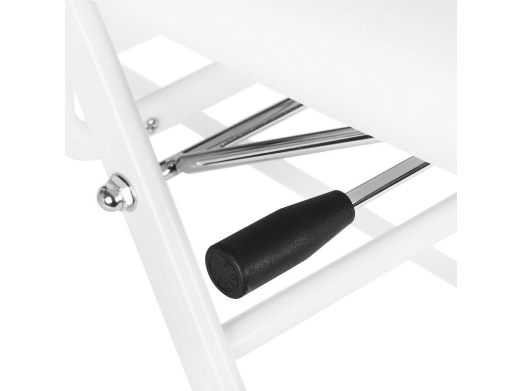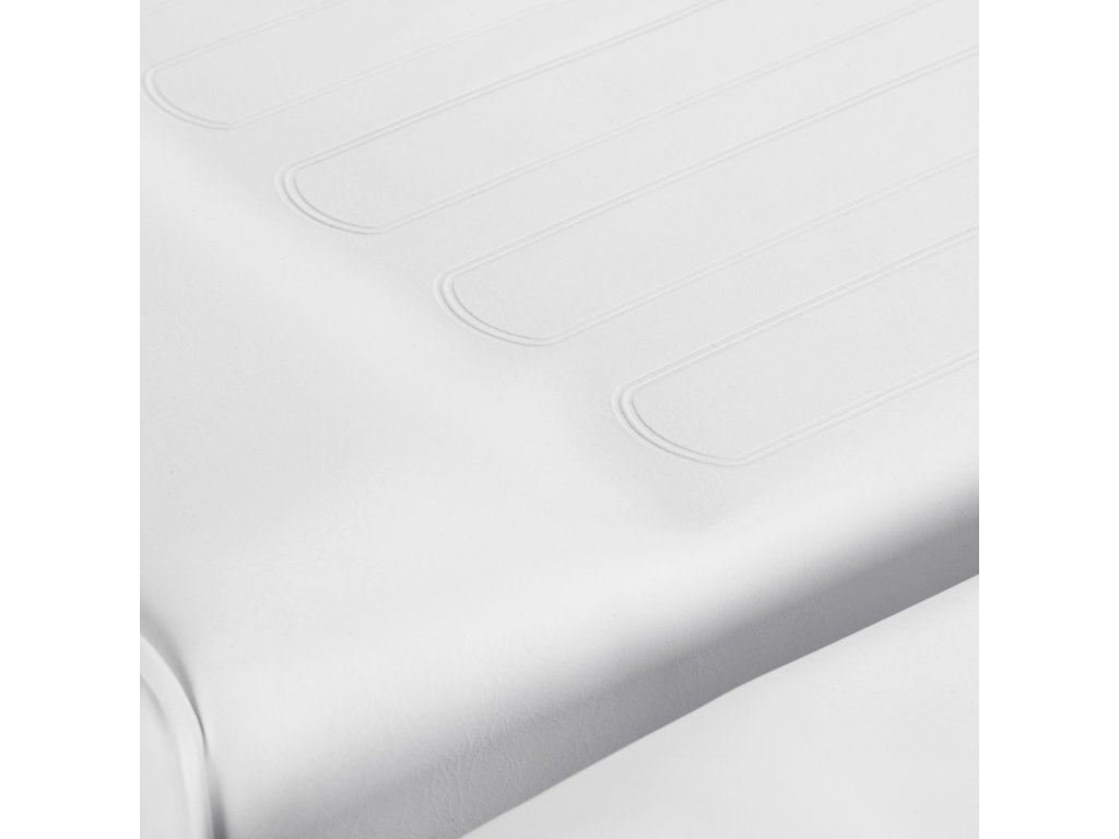 Díky polomatnému provedení a aerodynamickým nohám působí kovový rám elegantně a nezahlcuje prostor. Základna židle neumožňuje nastavení výšky sedáku, ale je ve výšce, která by měla být pohodlná při používání. Křeslo je vyplněno molitanem a potaženo imitací kůže v odstínech bílé. Díky použití takového materiálu se zařízení pohodlně používá, je odolné proti vlhkosti a snadno se čistí. Vhodně profilované obložení dodává sedadlu ergonomický tvar. Jednoduchý design a klasické barvy umožňují, aby se hodil do každého interiéru.
