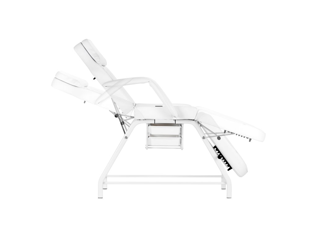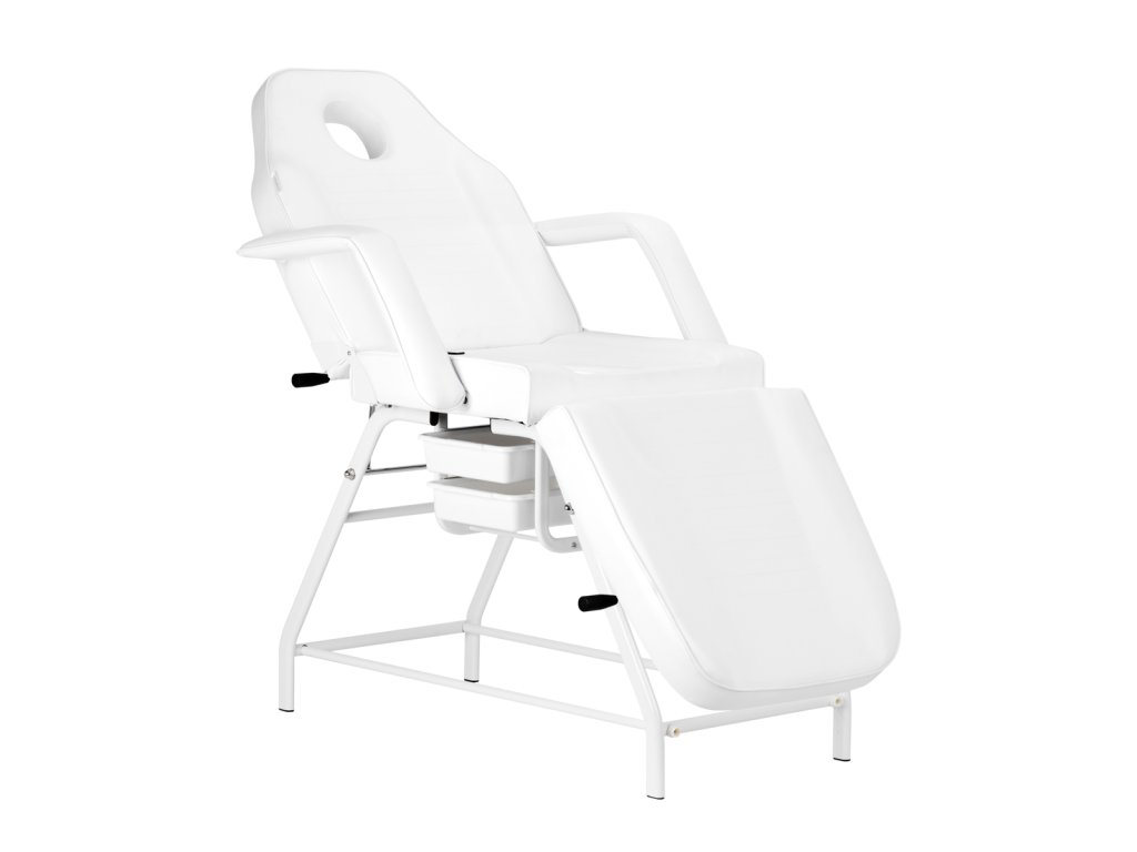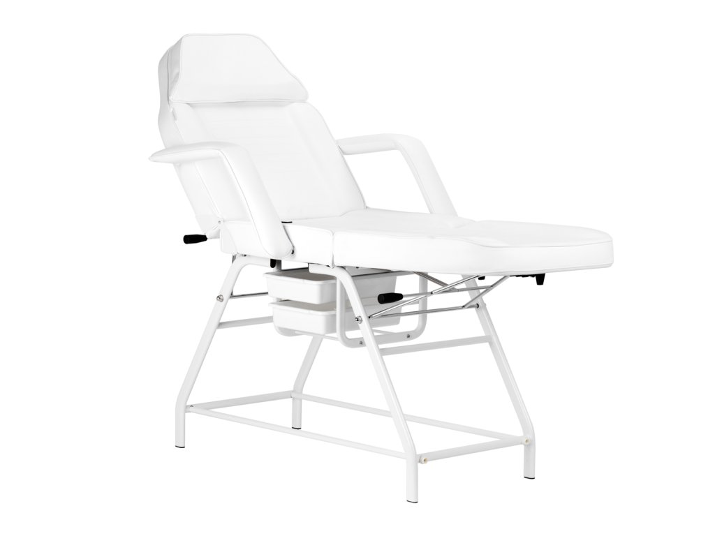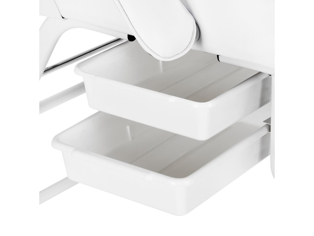 Kosmetické křeslo se dvěma tácy je praktické zařízení, které zlepšuje práci v mnoha specializovaných salonech včetně kosmetických, masážních a tetovacích salonů. Bude se hodit lidem, kteří hledají jednoduchý a funkční kousek kosmetického nábytku. Výsuvné nádoby namontované pod sedadlem zajišťují, že nejdůležitější nástroje a přípravky budete mít vždy po ruce.