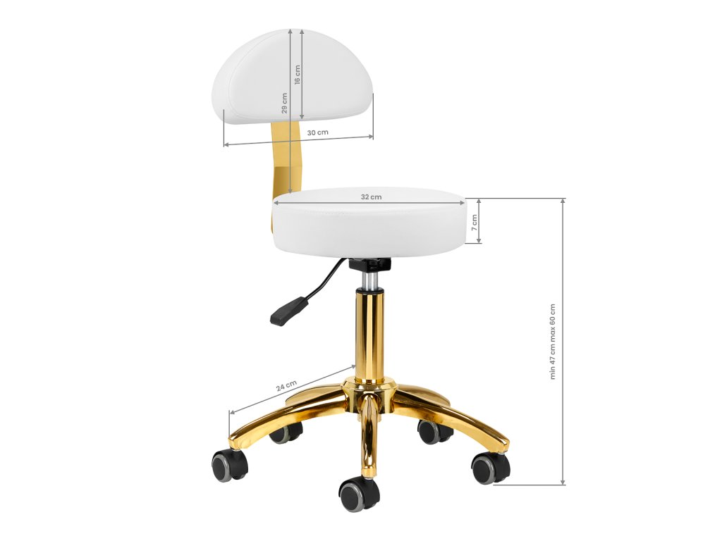 kosmetický taburet AM-304G, luxusní taburet do salonu, otočný taburet pro kosmetičku, ergonomický taburet, taburet s nastavitelnou výškou