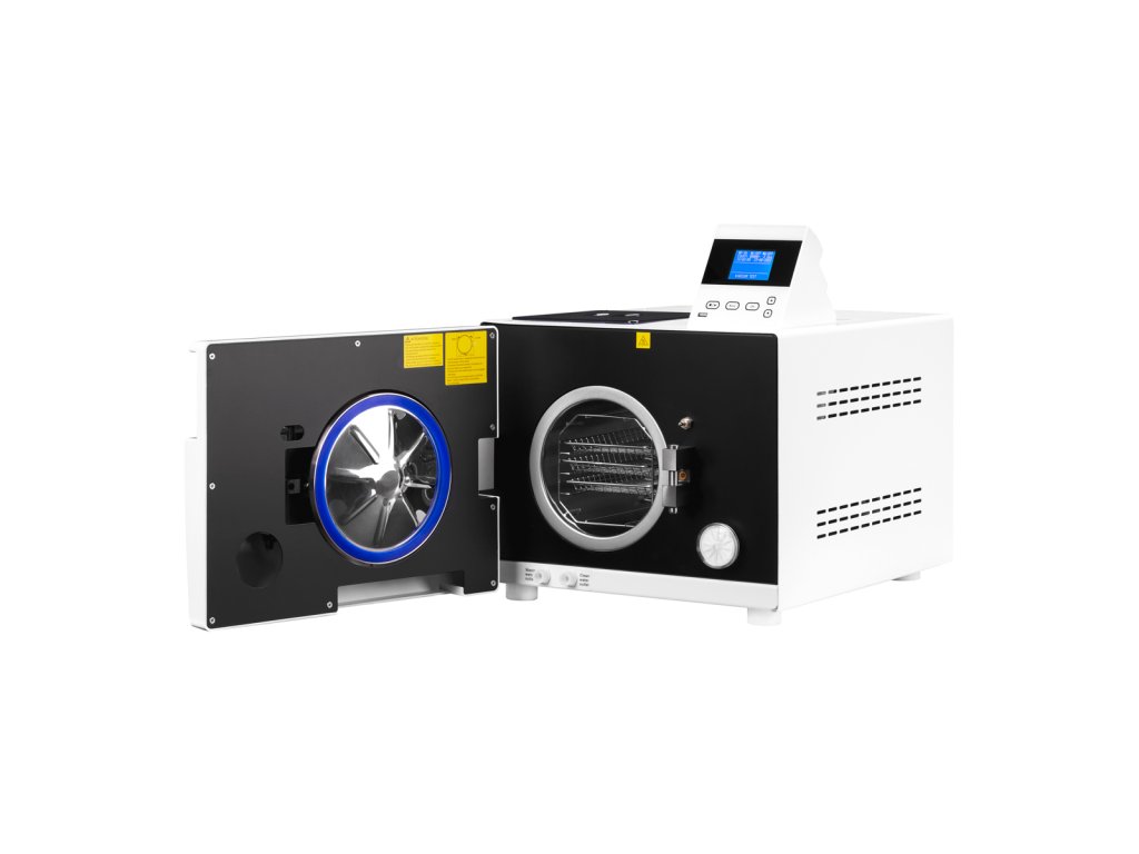 Lafomed Compact Line LFSS08AD je profesionální zdravotnický autokláv třídy B s kapacitou 8 litrů, vybavený integrovanou tiskárnou. Tento moderní a spolehlivý sterilizační přístroj je určen pro použití ve zdravotnických, zubních, kosmetických i tetovacích salonech. Umožňuje sterilizaci nástrojů různých typů – včetně dutých, porézních a balených materiálů – pomocí parní sterilizace s vakuovou technologií.