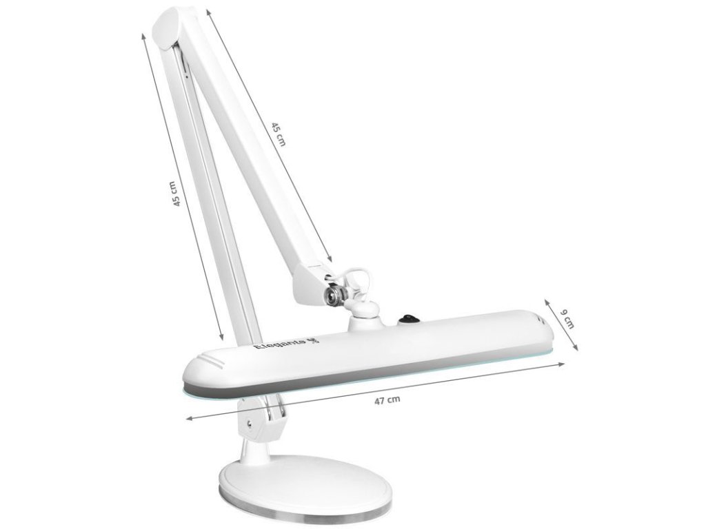 Elegante 801-S je kvalitní pracovní LED lampa s pevnou podstavou, navržená pro profesionální i domácí použití. Díky stabilní podstavě je lampa ideální pro práci na stolech, pracovních stanicích a v dílnách, kde je potřeba silné, rovnoměrné osvětlení.
