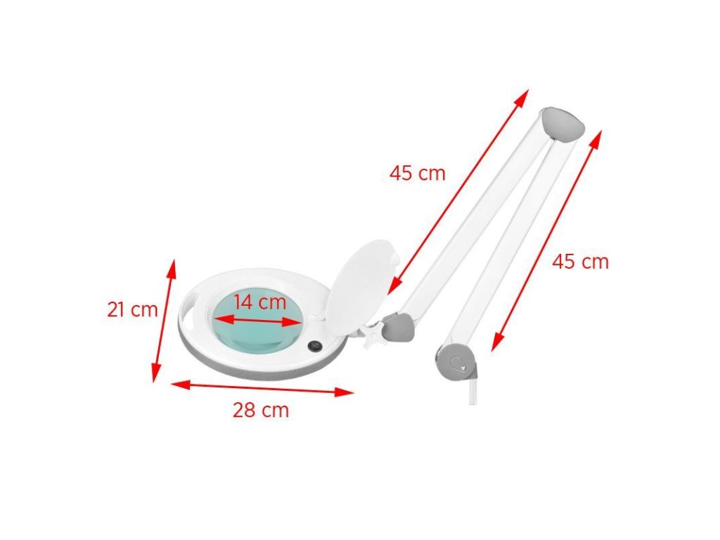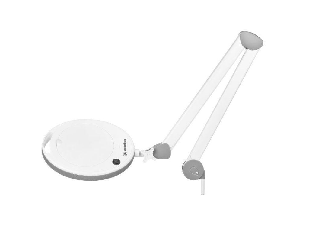 Profesionální lampa s lupou Elegante 6014 je určená k montáži na pracovní stůl nebo kosmetické lehátko pomocí pevného stolního držáku (blatu). Je vybavena 60 výkonnými SMD LED diodami, které poskytují silné, rovnoměrné osvětlení bez zkreslení. Lupa nabízí 5D zvětšení, ideální pro detailní práce vyžadující vysokou přesnost – například v kosmetice, dermatologii, nehtovém designu nebo při řemeslných činnostech.