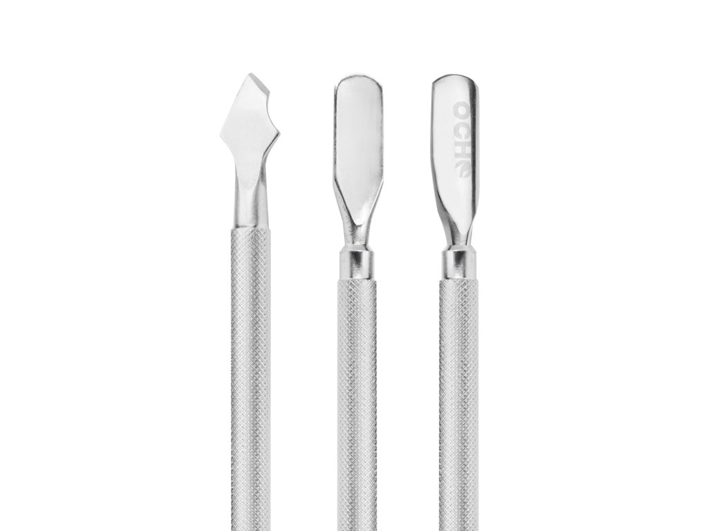 Díky oboustrannému zakončení nabízí multifunkční využití – jedna strana slouží ke šetrnému zatlačování kůžičky, druhá k jejímu jemnému seškrábnutí nebo čištění nehtů. Ergonomické vroubkování na rukojeti zajišťuje bezpečný úchop a precizní práci bez prokluzování.