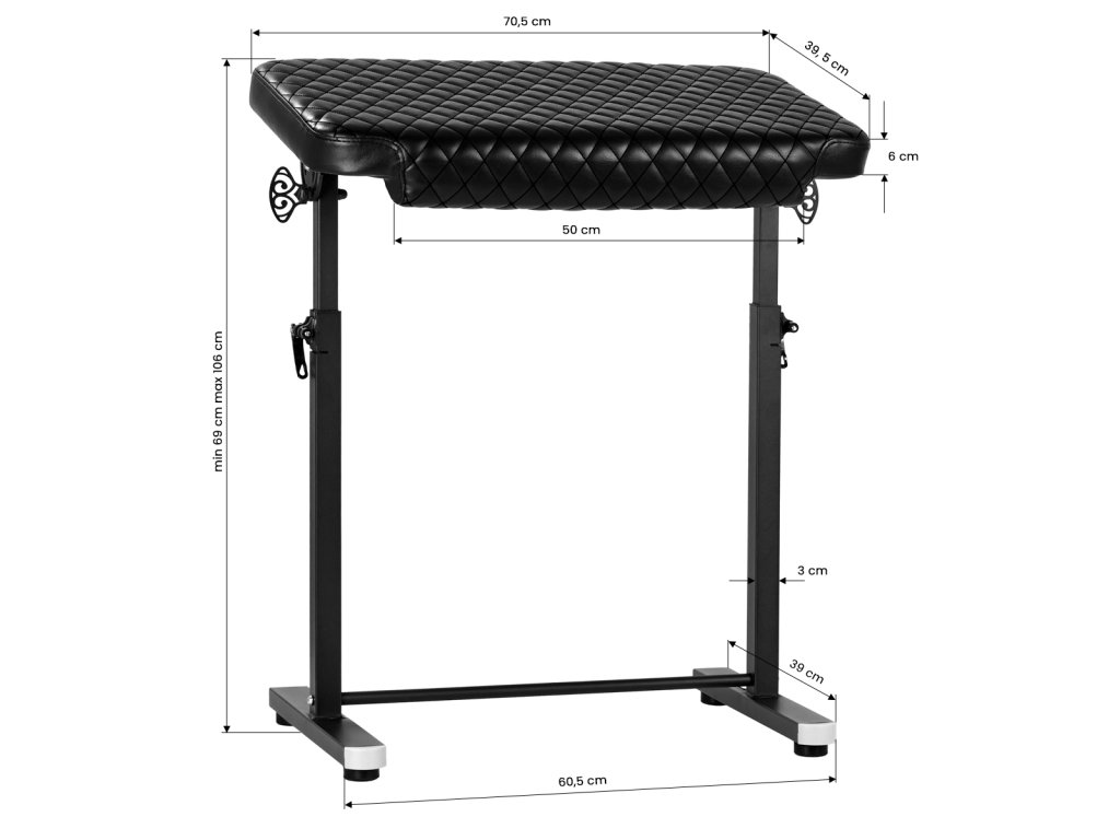 Područka na tetování je praktický doplněk určený pro zajištění pohodlí klienta i pohodlnou práci tatéra. Stabilní a ergonomicky tvarovaný podloketník poskytuje oporu pro ruku během tetování, což pomáhá minimalizovat pohyb a zvyšuje přesnost. Snadno nastavitelná výška a pevná konstrukce umožňují jeho přizpůsobení různým pozicím a potřebám v salonu.