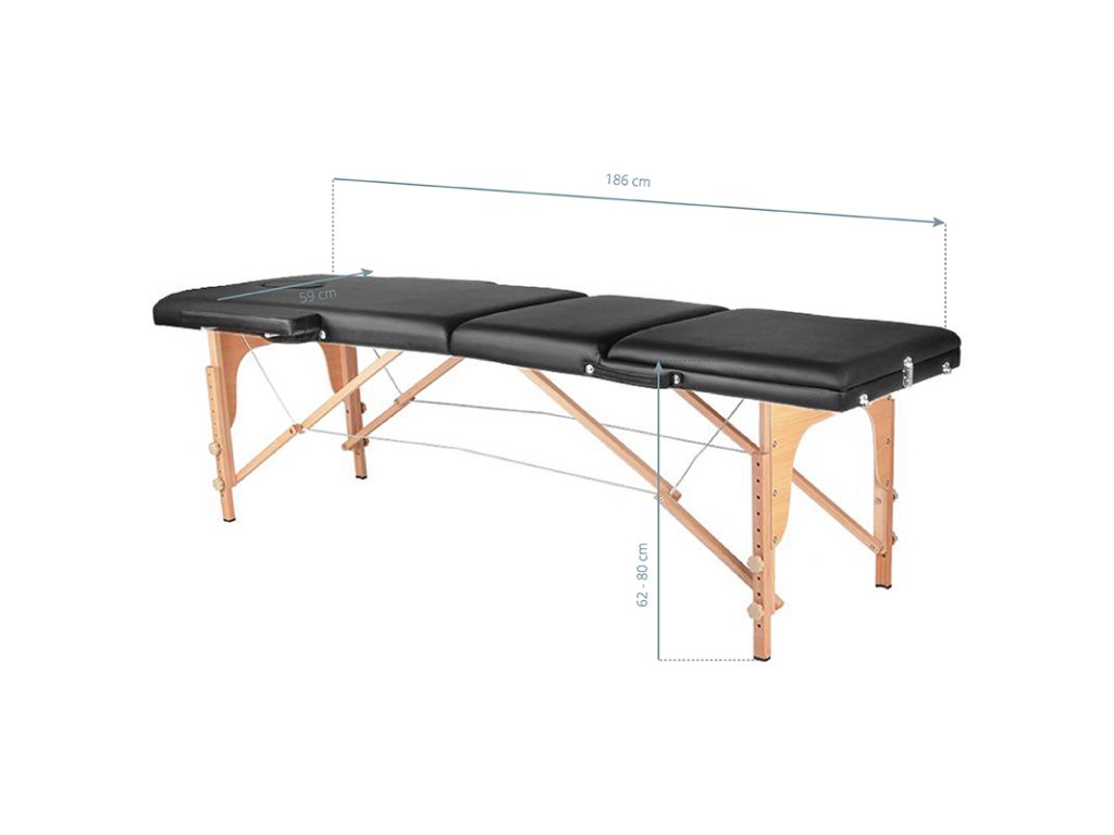 Skládací masážní stůl dřevěný Komfort Activ Fyzio 3 segmentový černý