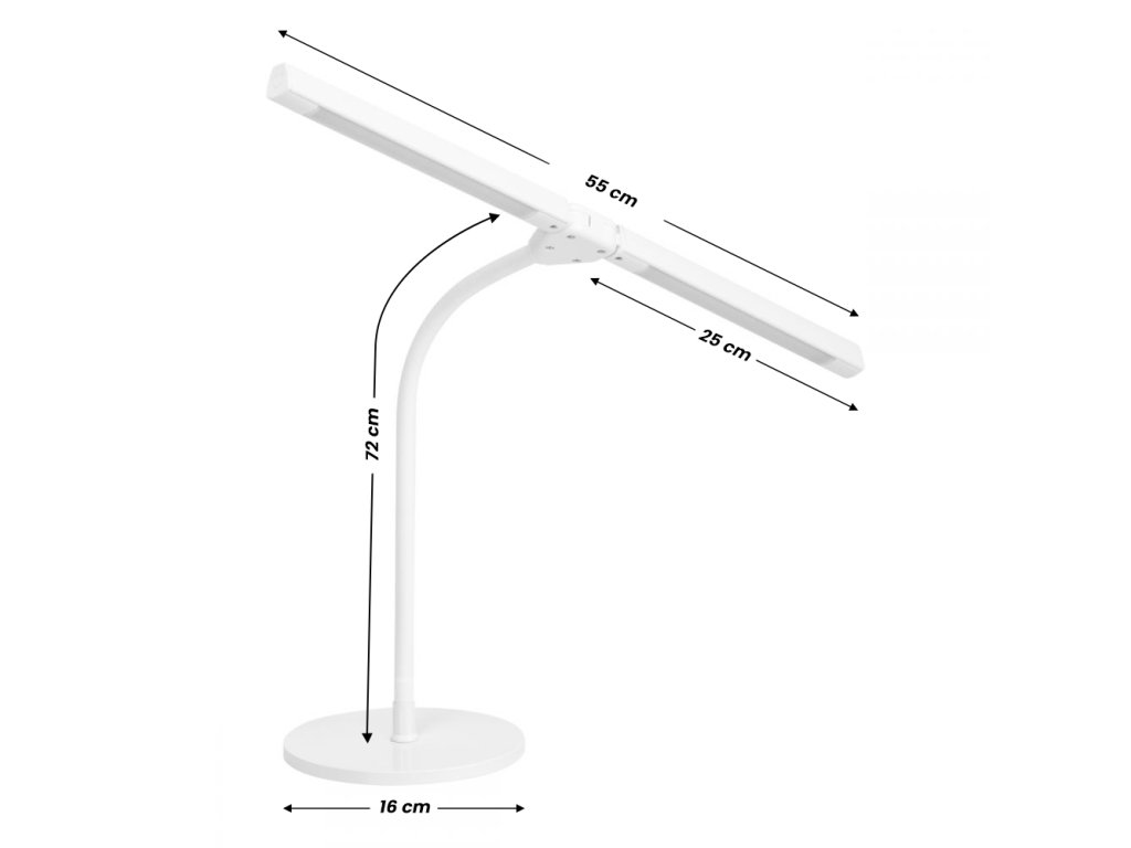 Lampa je vybavena nastavitelným raménkem, které umožňuje flexibilní nastavení úhlu a výšky, čímž si snadno přizpůsobíte světlo podle potřeby. Perfektní pro kancelář, pracovní stůl nebo domácí studium.