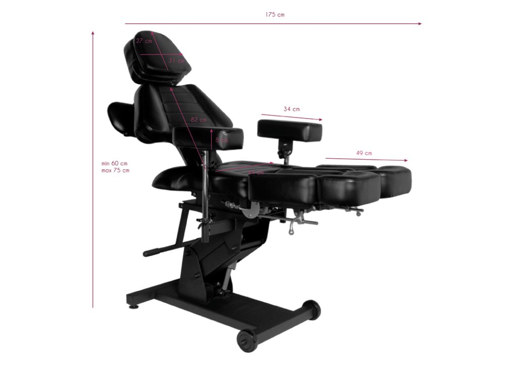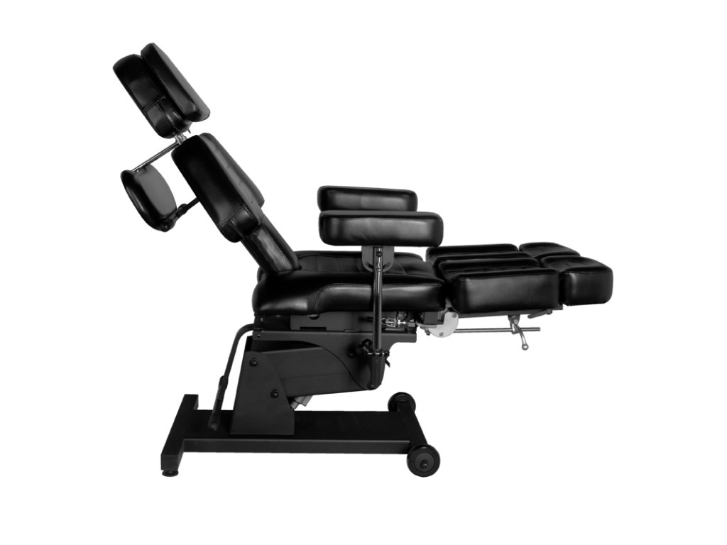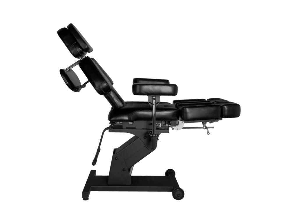 Velmi pokročilé, nastavitelné v mnoha rovinách (výška a zádová opěrka nastavitelná nožním ovladačem) s neomezenými možnostmi nastavení zajišťující pohodlí jak pro umělce, tak pro tetovaného.