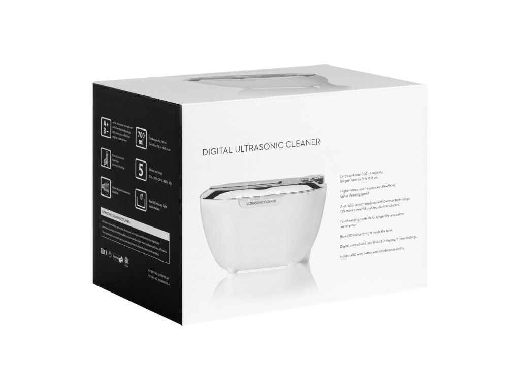 Tato ultrazvuková čistička využívá 31W výkon, což zajišťuje rychlé a efektivní čištění bez použití chemikálií. Bílý design a snadné ovládání dělají zařízení praktickým a estetickým pomocníkem pro každodenní údržbu vašich předmětů.